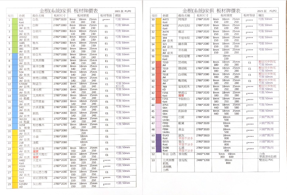 7月最新板材牌價表